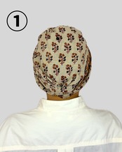 紐部分で結んでつけていただくので、自分の頭のサイズに合わせてかぶっていただけます。